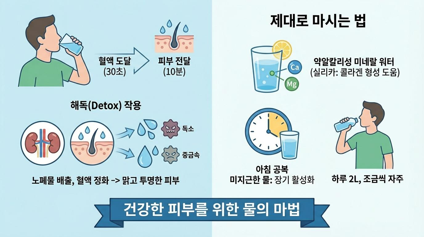맑고 투명한 피부를 위한 물의 해독 마법
